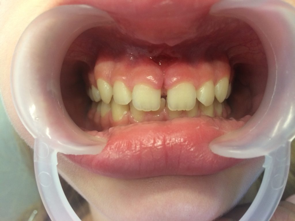 - Jedenastoletnia pacjentka została skierowana do gabinetu stomatologicznego autorów przez lekarza ortodontę w celu usunięcia przerostu wędzidełka wargi górnej przed leczeniem ortodontycznym.