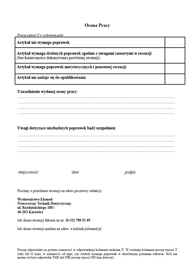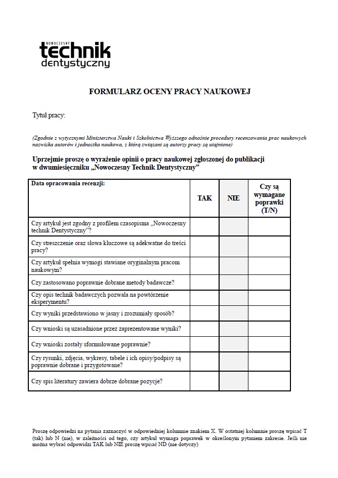 „Nowoczesny Technik Dentystyczny” – zasady recenzowania