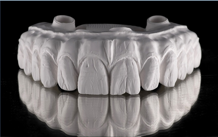 Oto mój protokół poprawnej obsługi materiałów z tlenku cyrkonu, takich jak Zolid HT+ Preshades, który można wykorzystać do wszelkiego rodzaju uzupełnień estetycznych, poczynając od pojedynczych koron po pełne łuki zębowe na implantach. W niniejszym artykule pokażę, w jaki sposób skutecznie i łatwo zindywidualizować i ucharakteryzować wysoce estetyczne jednolite uzupełnienia z tlenku cyrkonu. W tym celu wybrałem dwa przypadki: monolityczny most pełnołukowy na zębach tylko barwiony oraz most na implantach z monolitycznymi zębami i licowanym dziąsłem (fot. 1). W obu przypadkach zastosowano materiał Zolid HT+ Preshades.